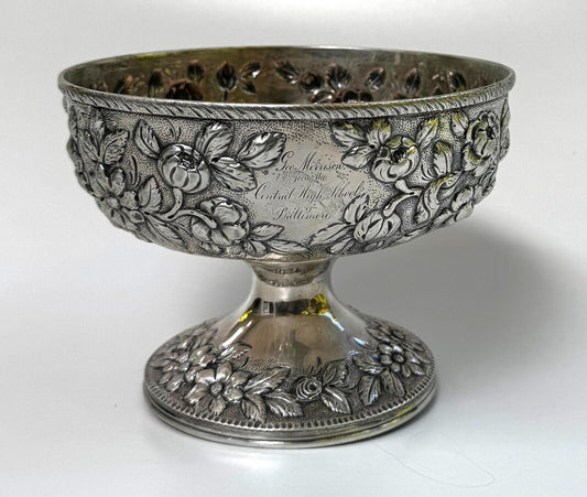 Antique 11 oz Coin Silver S. Kirk & Son Footed Bowl w Floral Repousse (WeP)