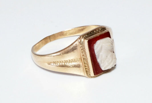 Antique 10k Yellow Gold Ring Sz 6.25 Stone Carved Cameo Woman Motif (Mit)