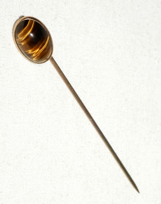 Antique 10k Yellow Gold Tie Pin w. Bezel Set Tiger's Eye Cabochon Accent (TuD)