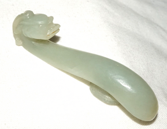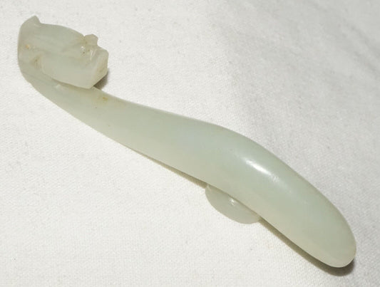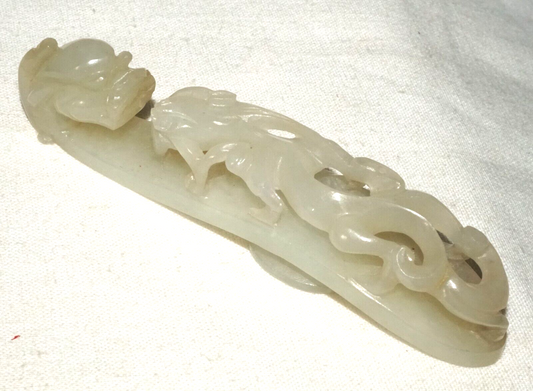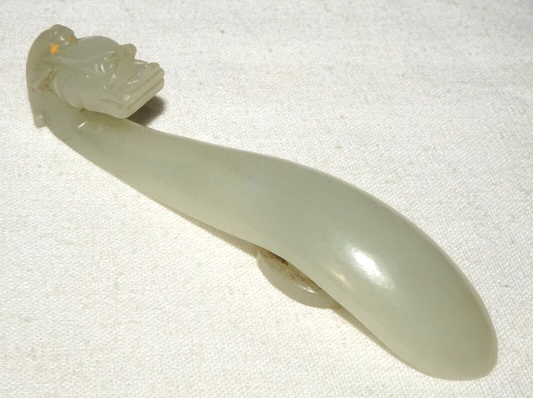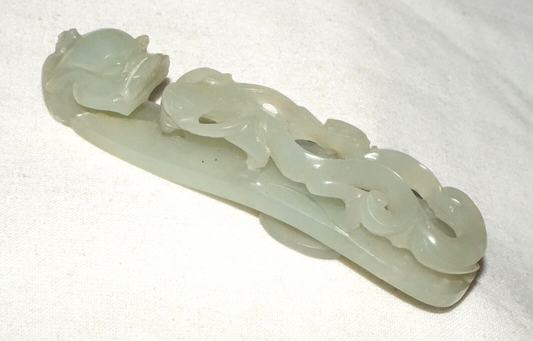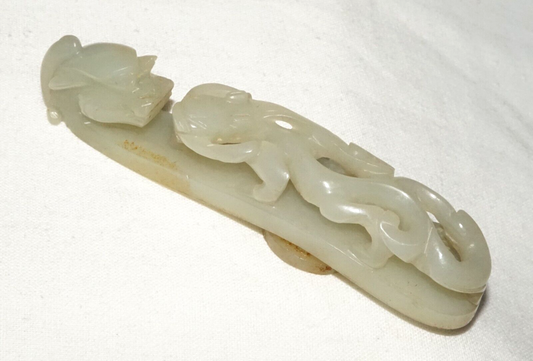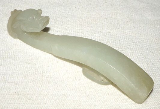 Antique Chinese Grey Green Nephrite Jade Dragon Belt Hook (UVi)#2