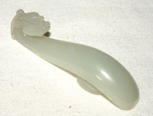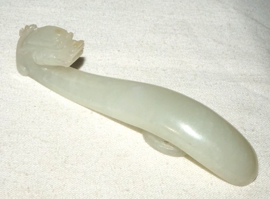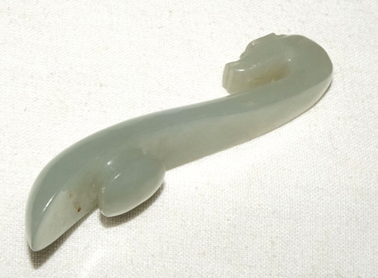 Antique Chinese Grey Green Nephrite Jade Dragon Belt Hook (UVi)#9