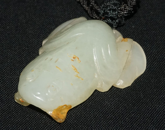 Antique Chinese Grey Green Nephrite Jade Toad Motif Carved Pendant (LeS)L23