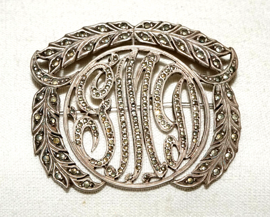 Antique Sterling Silver Monogram GMD Brooch w. Marcasite Accents (InS)#L1