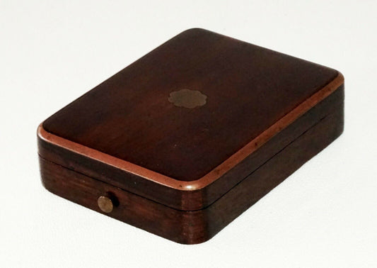 Antique UK Hinged Top Hardwood Box w. Banded Metal Edge missing Liner (FLA)