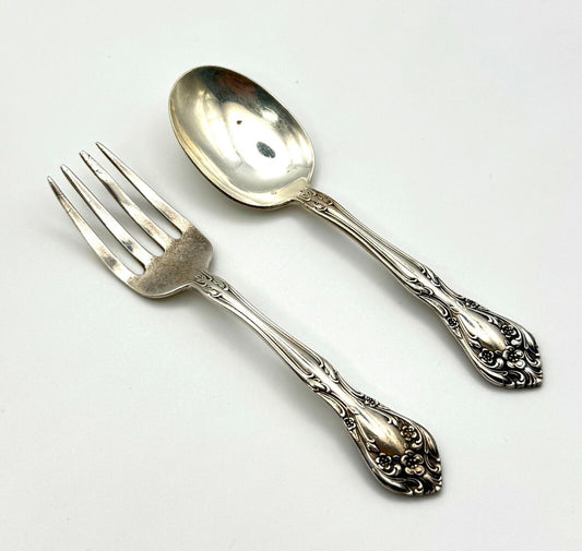 Antique Sterling Chateau Rose by Alvin Toddler Silverware Fork & Spoon Set (MiM)