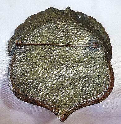 Antique Silver Plated Shield Design Brooch w. Knight & Fleur de Lis Motif (***)