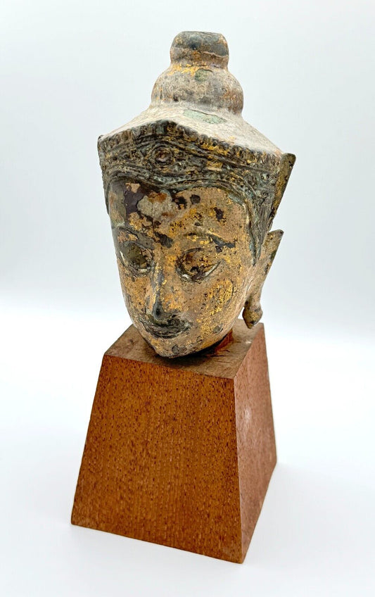 Antique Thai Ayuthayan Style Bronze Buddha Head Gilded (MiM)