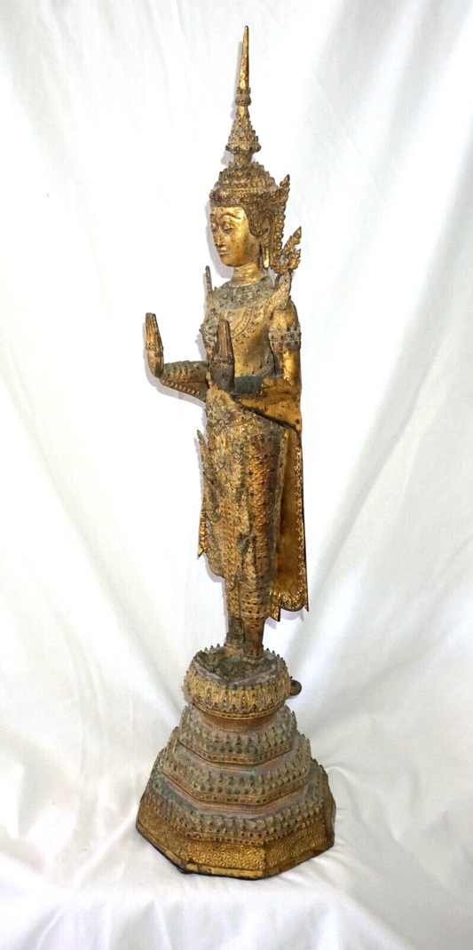 Antique Thai Antique Bronze Rattanakosin Buddha Statue (HiC)