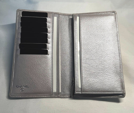 Chanel Camellia Silver Bifold Lambskin Wallet w Box, Inserts, Dust Cloth (InS)67