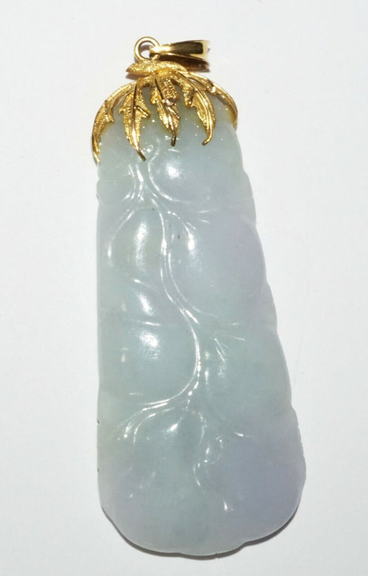 Chinese 14K Yellow Gold Lavender Jade Peach Motif Well Carved Pendant (NaD)#9