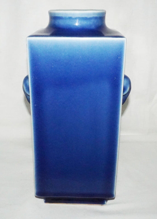 Chinese Blue Glazed Square Cong Form Vase w. Elephant Handles & Reign Mark(LeS)