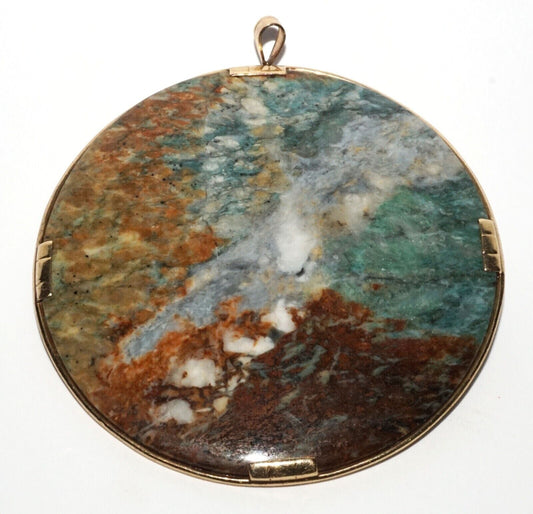 Chinese 14K Yellow Gold Brooch Pendant w. Picture Jade Disk by Ming's (LeS) G10