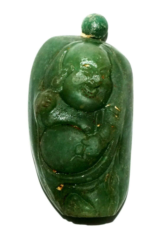 Chinese Aventurine Carved Snuff Bottle w. Laughing Buddha Motif (LeS) G2
