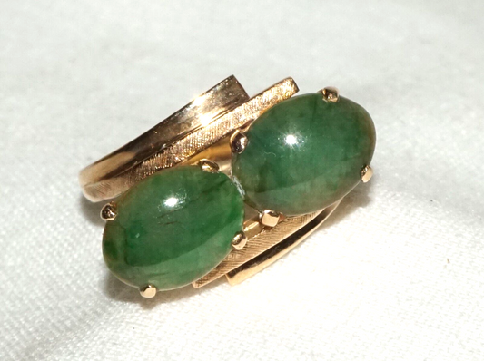 Chinese 14k Yellow Gold Ring Sz.5.25 2x Jadeite Jades TY Lee Honolulu (FeD)