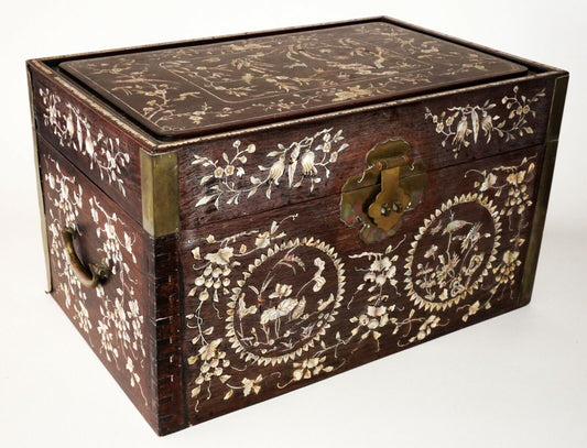 Chinese Large Hardwood Storage Chest w. MoP Inlay Birds & Flower Motifs (RiS)