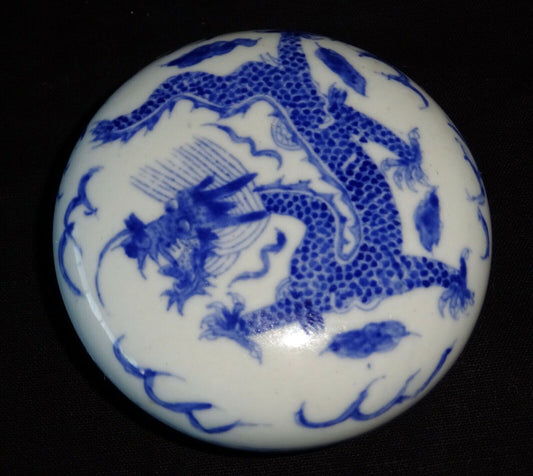 Chinese Covered B&W Seal Paste Box w. Writhing Dragon Motif & Reign Mark (HeN)