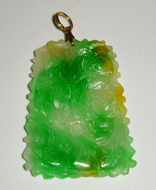 Chinese Jadeite Jade Plaque Pendant w. Writhing Dragon & Pearl Motif (LuD)