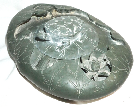 Chinese Large Slate Carving Ink Stone Scholars Desk Tortoise & Toad Motif (ChT)