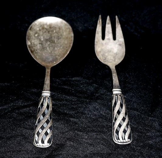 Danish Silver Serving Spoon & Fork w Pierced Curvilinear Reticulated Handle(AHB)