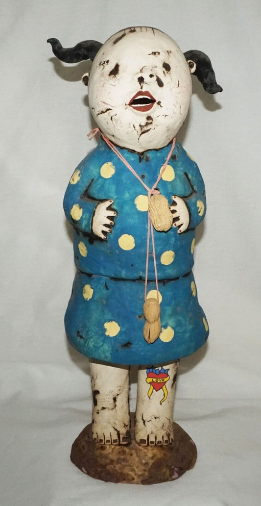 Contemp. Hawaii Pottery Sculpture Ponytail & Love Tattoo Girl by Jo Rowley (CuM)