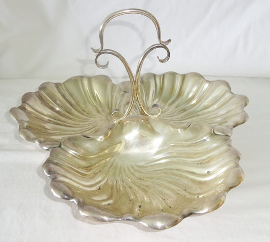 English Silver Plated 3x Shell Motif Serving Tray with Handle (Kow)