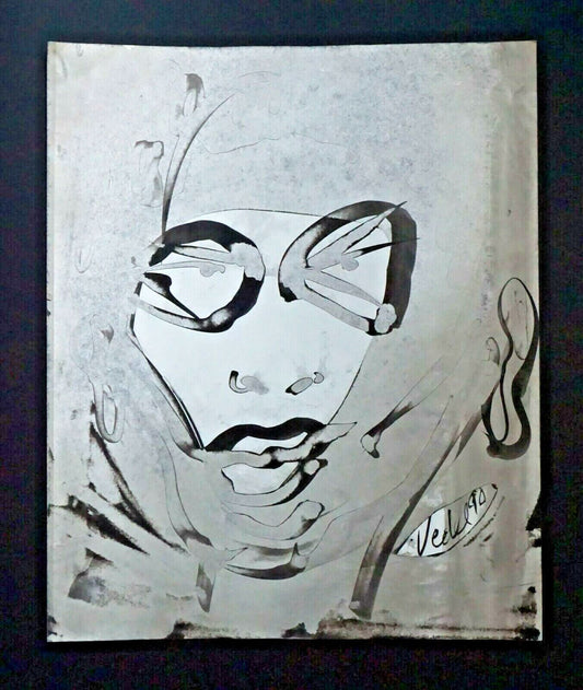 France Hawaii Outsider Art Ink Wash Painting Portrait by Claude Vedel (EtJ)#27