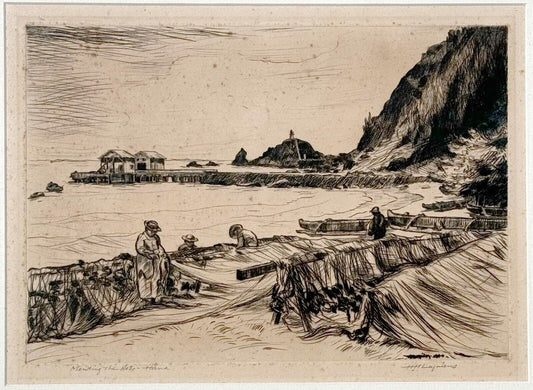 Etching "Mending the Nets- Hana" by Huc Mazelet Luquiens (KuK)