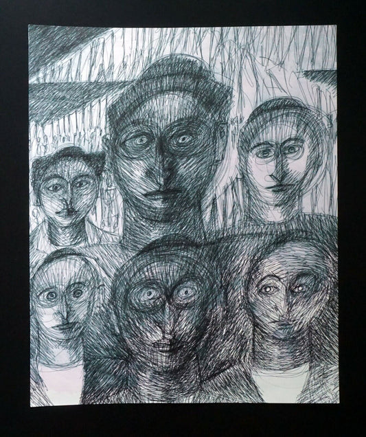 France Hawaii Outsider Art Ink Drawing Starring Figures by Claude Vedel (EtJ)#7