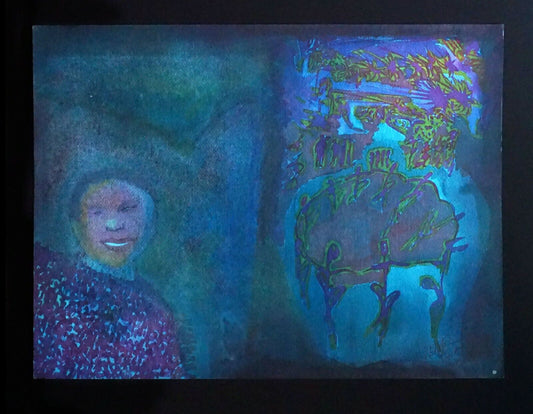 France Hawaii Outsider Art WC Painting Dark Figure & Dance Claude Vedel (EtJ)#14