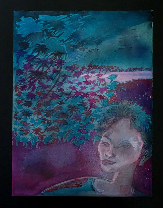 France Hawaii Outsider Art WC Painting Female in Space by Claude Vedel (EtJ)#4