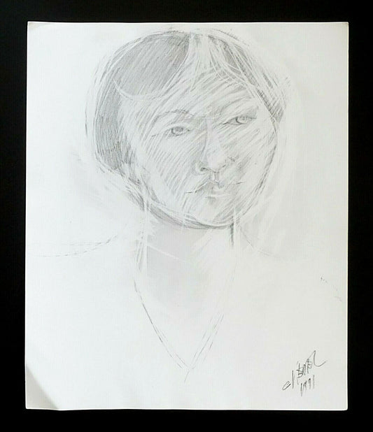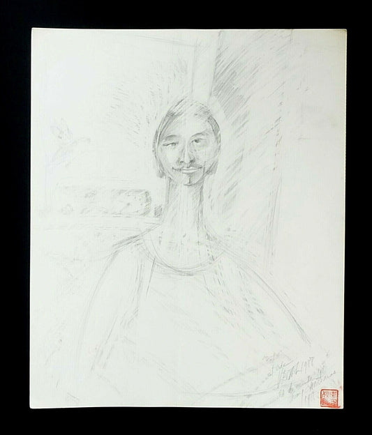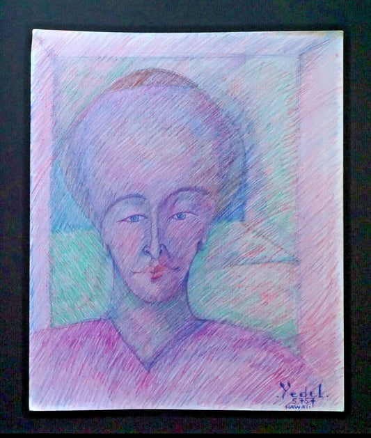 France Hawaii Outsider Art Pencil Drawing Female Portrait Claude Vedel (EtJ)#55