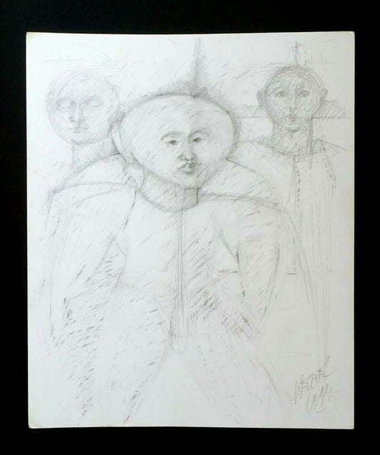 France Hawaii Outsider Art Pencil Drawing The Visitors by Claude Vedel (EtJ)#42