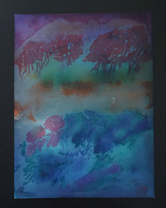France Hawaii Outsider Art WC Painting Night in the Park Claude Vedel (EtJ)#69