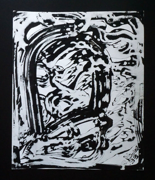 France Hawaii Outsider Art Surreal Face Ink Painting by Claude Vedel (EtJ)#26
