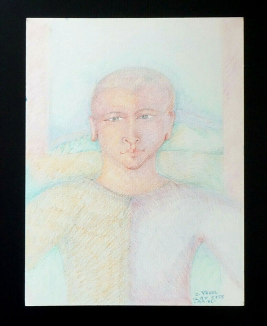 France HI Outsider Art Color Pencil Painting Male Portrait Claude Vedel (EtJ)#35
