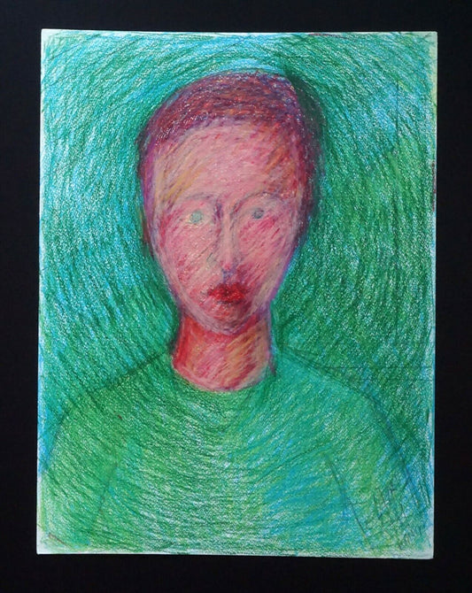 France HI Outsider Art Color Pencil Painting Male Portrait Claude Vedel (EtJ)#68