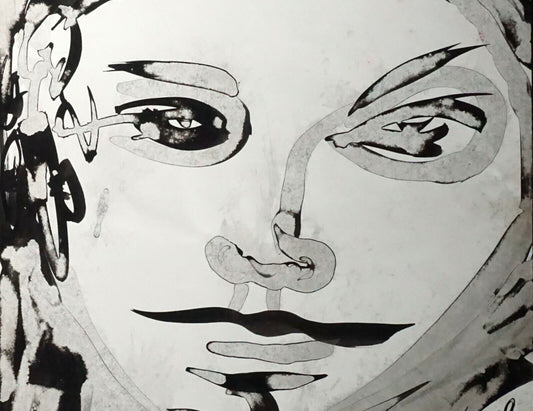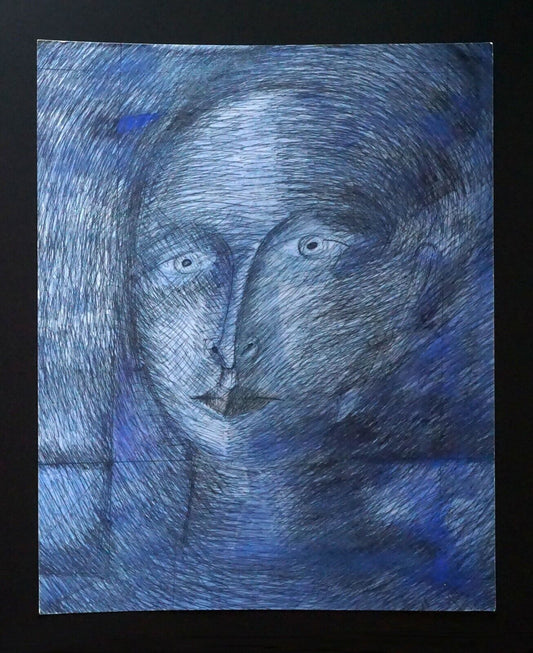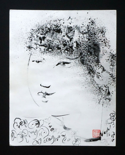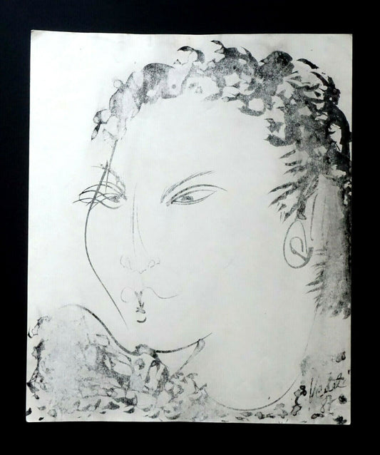 France HI Outsider Art Mixed Media Ink Painting Female by Claude Vedel (EtJ)#18