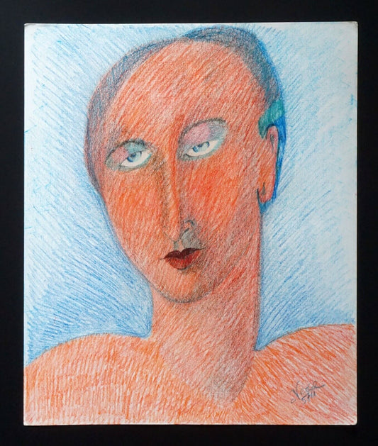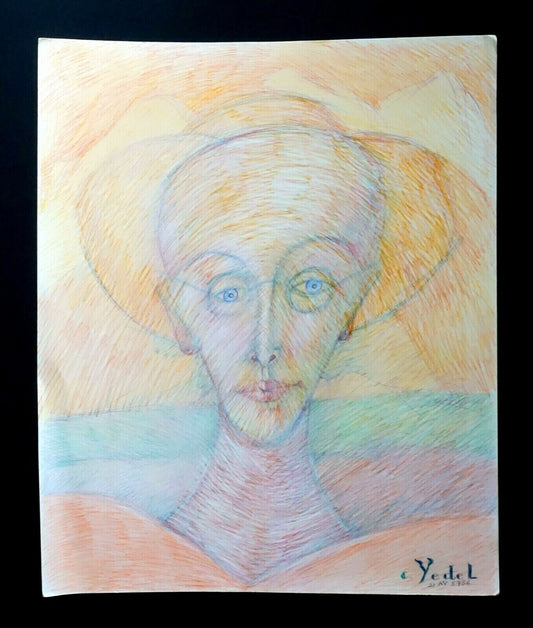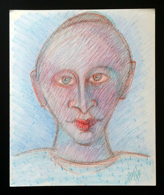 France HI Outsider Art Color Pencil Painting Portrait by Claude Vedel (EtJ)#49