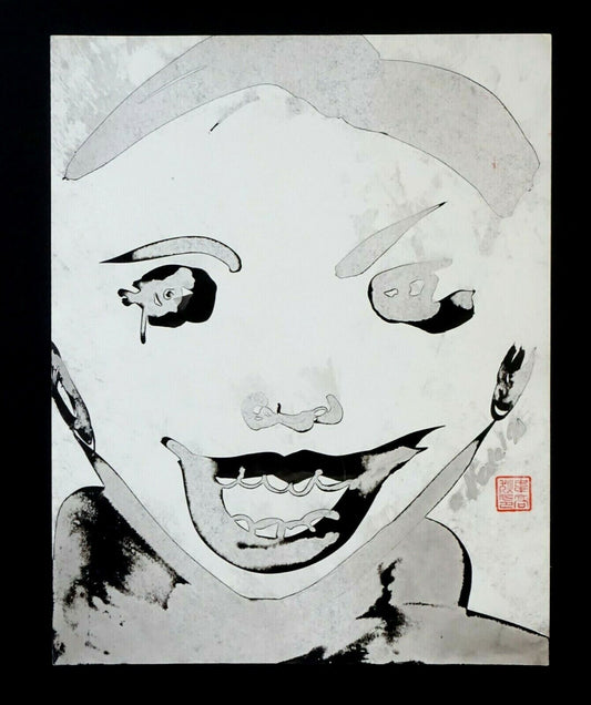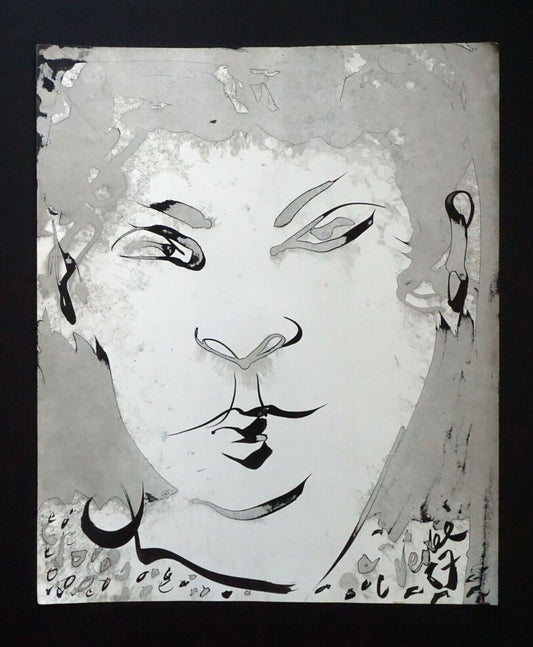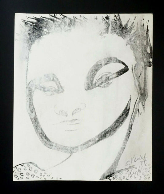 France Outsider Art Ink Wash Painting Buddhist Face by Claude Vedel (EtJ)#36