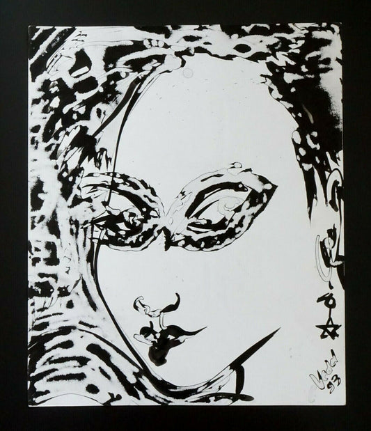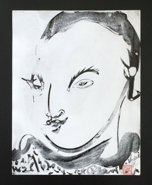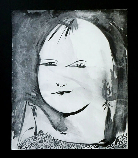 France Outsider Art Ink Painting Shakubuku Girl Portrait Claude Vedel (EtJ)#61