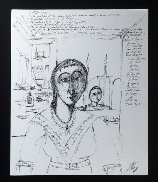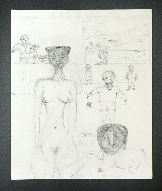 France HI Outsider Art Pen & Ink Painting Nude & Child Claude Vedel (EtJ)#71