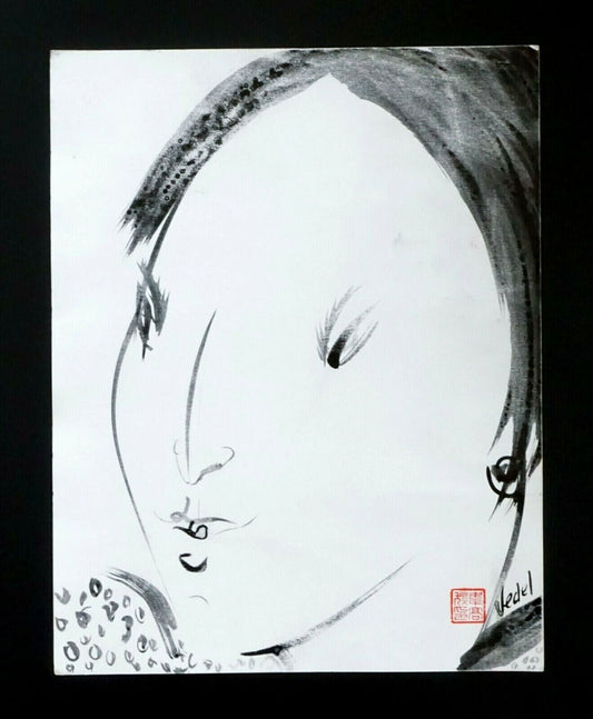 France Outsider Art Ink Painting Japanese Girl Portrait by Claude Vedel (EtJ)#62