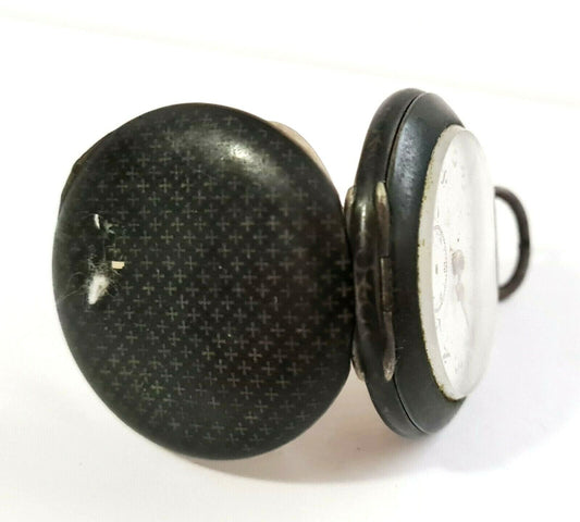 German Russian Niel Black Enamel Silver 84 875 Half Hunter Pocket Watch (AHB)