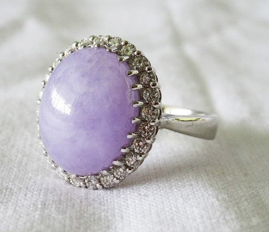 Hawaii 18K White Gold Ring Sz 9.25 Lavender Jade & 25x Diamonds by L Rafael (Pal