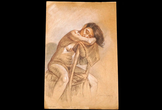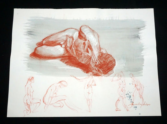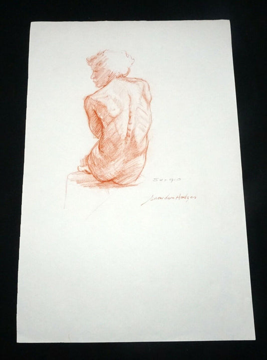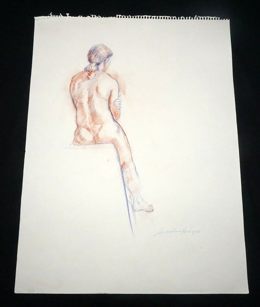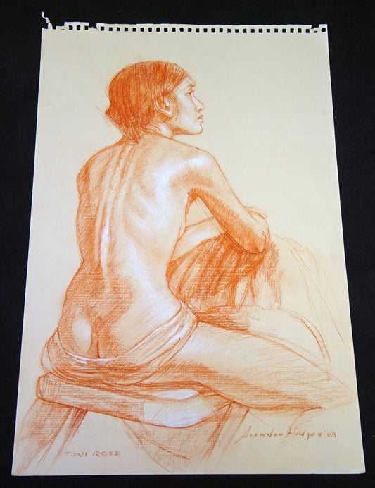 Hawaii Conte Drawing Painting Seated Nude "Toni Rose" by Snowden Hodges (Sho)