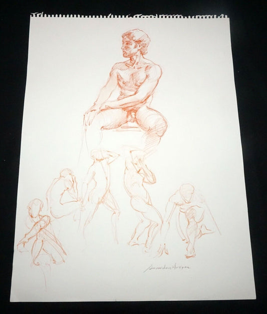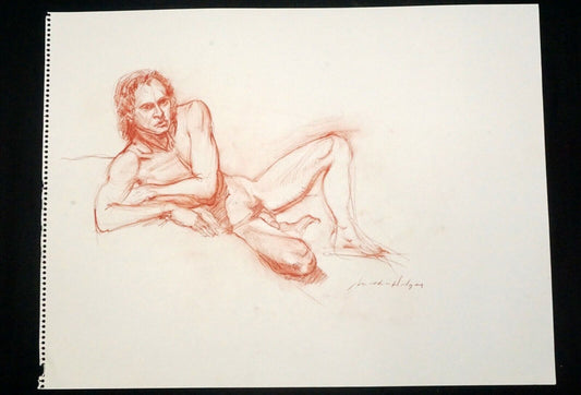 Hawaii Conte Drawing Painting Male Nude by Snowden Hodges (Sho)