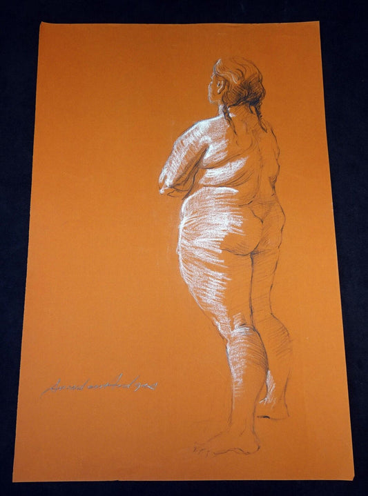 Hawaii Conte Drawing Painting Voluptuous Nude by Snowden Hodges (Sho)