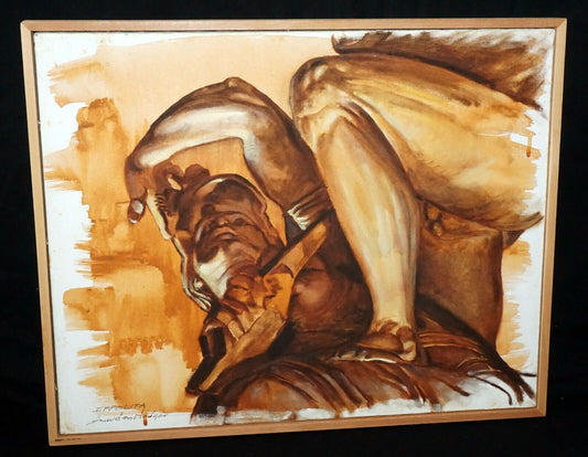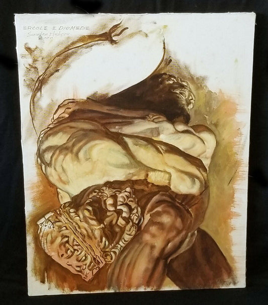 Hawaii Framed Oil over Acrylic Wash Hercules & Hippolyta by Snowden Hodges (Sho)