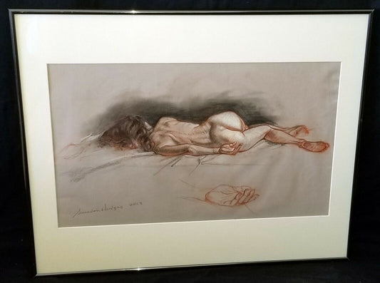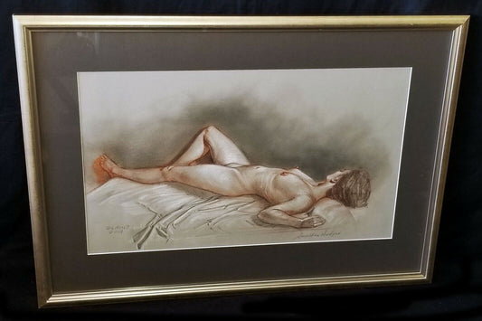 Hawaii Framed Mixed Media Painting Sleeping Nude by Snowden Hodges (Sho)