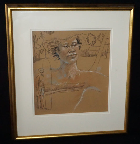 Hawaii Framed Pastel Painting "Hawaiian Surfer & Portrait" by Shanon Smith (New)